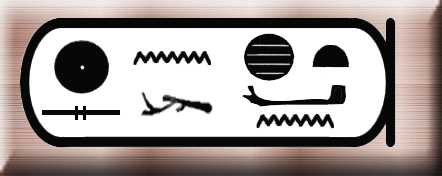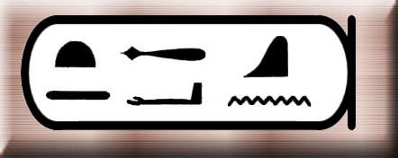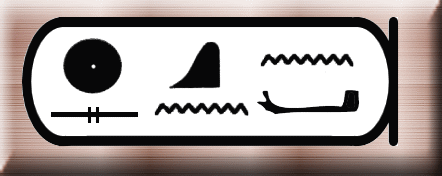 即位名の意味は「ラーの顕現は黄金色」。「ケペル」(一番右の文字)はケプリ神のことでスカラベ(糞転がし)の形で表される。糞転がしが糞を転がして歩く姿が、太陽を転がしているように見えることから神格化された。