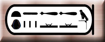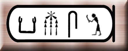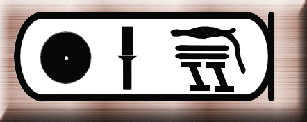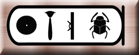 即位名の意味は「ラーの顕現は黄金色」。「ケペル」(一番右の文字)はケプリ神のことでスカラベ(糞転がし)の形で表される。糞転がしが糞を転がして歩く姿が、太陽を転がしているように見えることから神格化された。