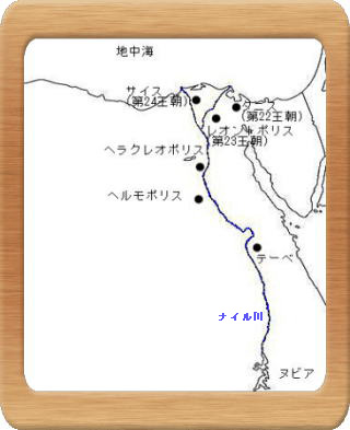 リビア人の王朝。バステト神(猫の神)を主神とするブバスティス出身のシェションク1世が立ち上げた。リビア人は新王国時代から徐々にエジプトに入ってきており、有能で要職につく者も多かった。