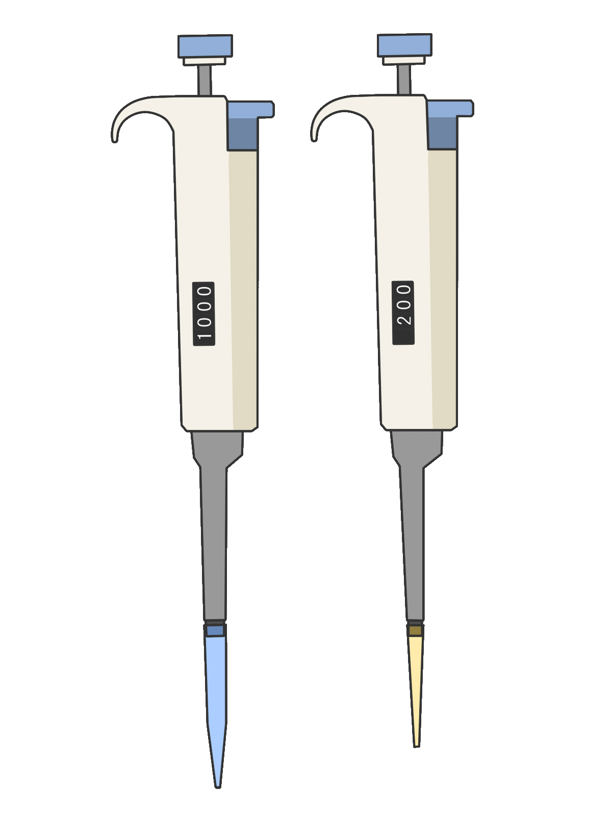 配属後初めての作業はマイクロピペットの使い方の練習でした。バイオ系の仕事だったので、扱う液量がμlオーダーの精密な容量を測ることが必要な実験がほとんどでした。ということでまずはマイクロピペットで正しく200μlを量る練習です。水の密度は約1なので、マイクロピペットで蒸留水を200μl採取し、その重量を天秤で測るというものです。天秤もセミミクロ天秤という非常に精密な重量を測定出来るもので、気温や湿度の影響も受けるため、天秤室という秤量専門の部屋がありました(天秤が沢山置いてある)。除湿しており気温も低めで長時間いると寒くて凍えてしまいます。水の密度は実際には液温によって変わりますが、20℃なら0.