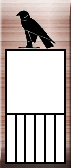 ホルス名 王朝初期から第4王朝頃まで使われていた。セレクと呼ばれる枠の中に記された。セレクは王宮を示しており、上にホルス神(ハヤブサ)がとまっているため、ホルス名と呼ばれている。ファラオはホルス神の化身とされていた。 |