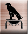 黄金のホルス名 ホルス神と貴金属の胸飾りを組み合わせて記す。黄金はその輝きが決して褪せないことから「永遠」の象徴だった。 |