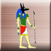 アヌビス ネフティスの子。墓地の守護神であり、ミイラ作りの神。ジャッカルの姿で表される。 |