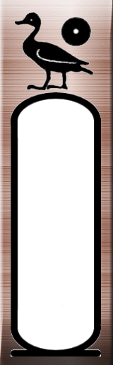 サァ・ラー(太陽神ラーの息子)名=誕生名 息子を示す鴨と太陽神ラーを示す円形のマークで表され、ネスゥ・ビト名と同様にカルトゥーシュの中に名前を記す。第6王朝から使われている。しばしばネスゥ・ビト名とペアで使われる。 |