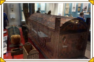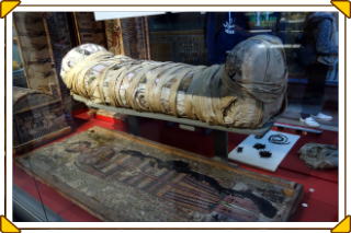 | 中央部にミイラの来歴が記された棺 |