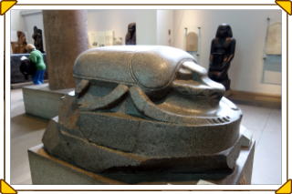 ケプリ スカラベ(糞転がし)の姿が太陽を転がしているように見えたことから神格化された。再生、復活の神。 |