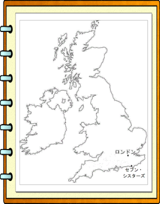 セブン・シスターズはイギリス海峡に面する白亜の断崖絶壁。ロンドンから南へ80km程です。頂が7つありそれが7人の修道女に見えるというのですが、そのように見えるかどうかは微妙なところです。チョークで形成されている絶壁で、毎年30〜40cmというペースで浸食され続けています。崖の下には崩れたチョークがボロボロ転がっていて、拾ってみると本当に白い文字など書くことが出来るチョークでした。セブン・シスターズの観光案内所(駐車場やバス停、ショップもある)は少し内陸に入った所にあり、そこから海岸沿いの絶壁までは、広大な牧場や草原地を通るウォーキング・コースになっています。30分程度歩くと海岸に出ます。